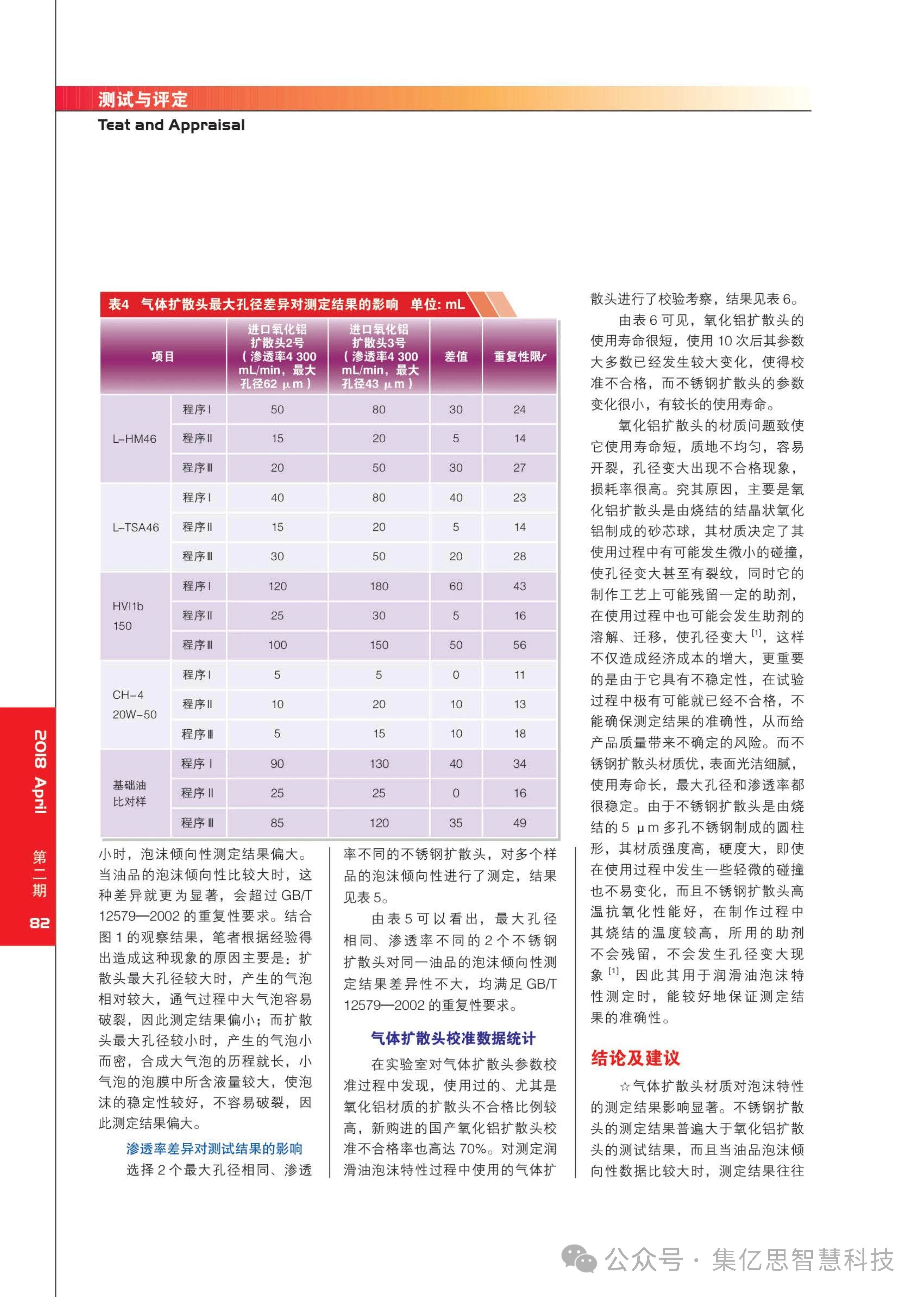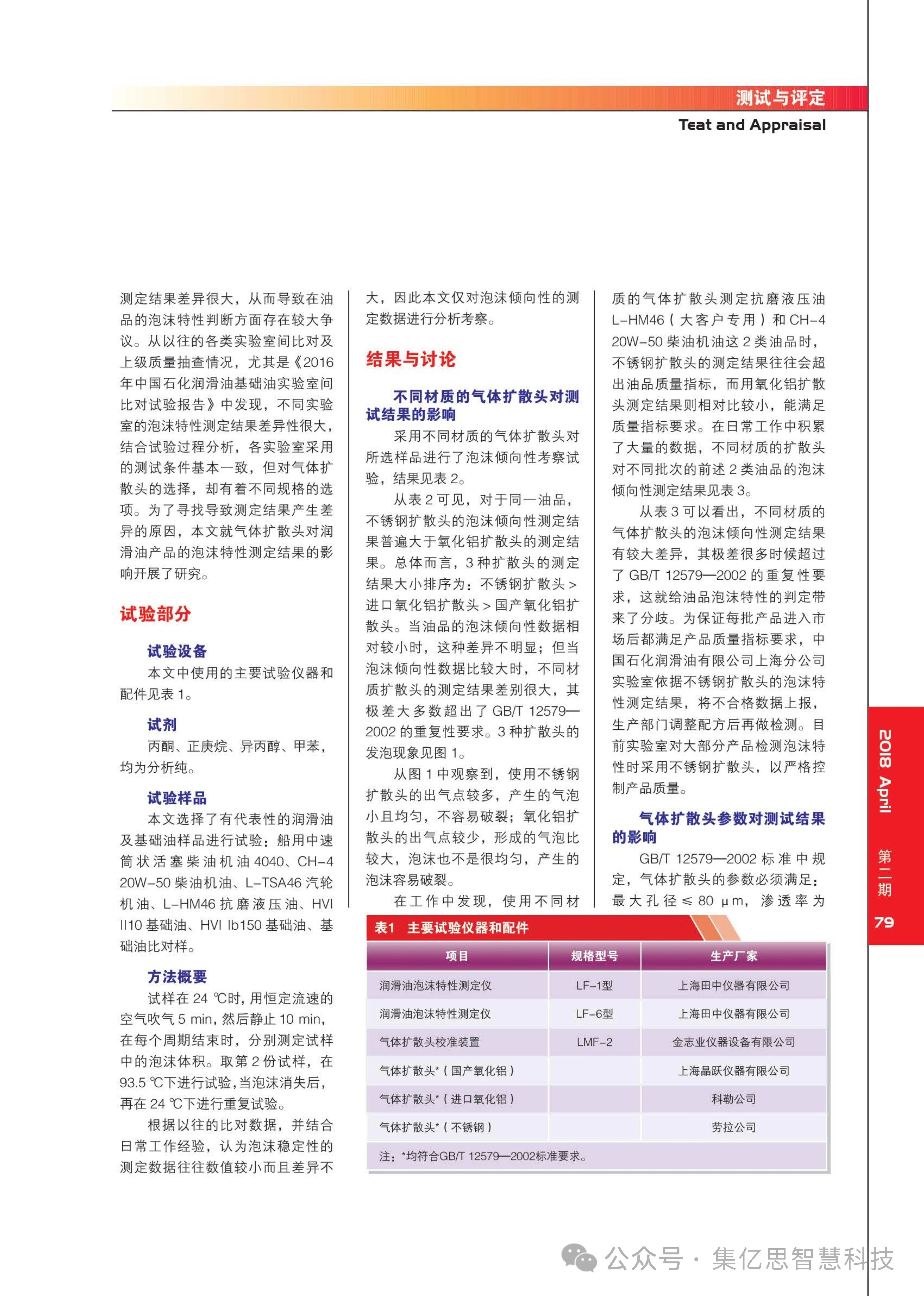 【好文分享】气体扩散头对润滑油泡沫特性测定结果的影响